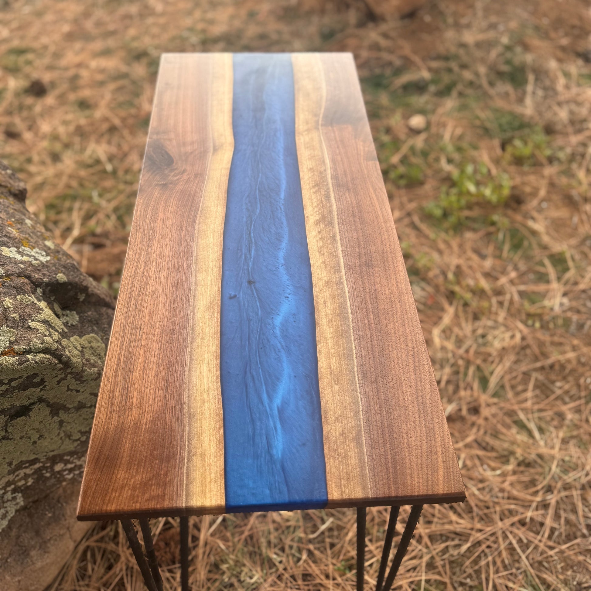 - Walnut and Resin Accent Table.